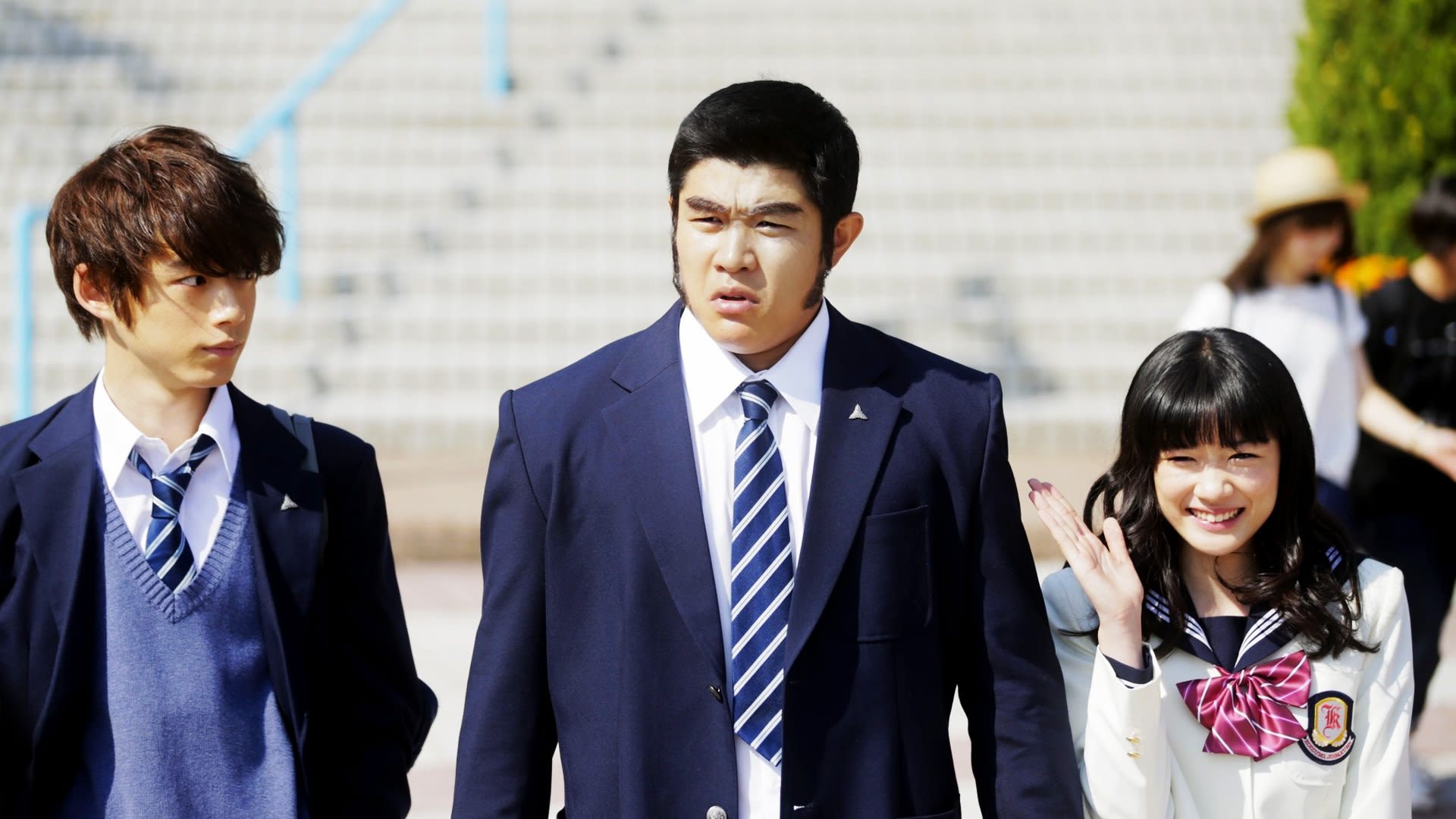 Takeo Goda is a high school student 2 m tall and weighting more than 100 kg. He has a righteous character. The male students adore him, but female students do not like him. All of the girls Takeo likes prefer his handsome friend Makoto Sunakawa.