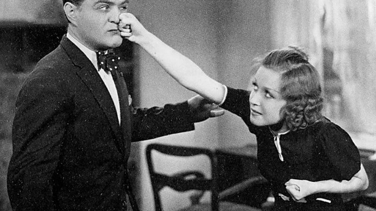 Polish comedian Adolf Dymsza cross-dressing and masquerading as a woman in order to gain the confidence of his sweetheart's domineering guardian.